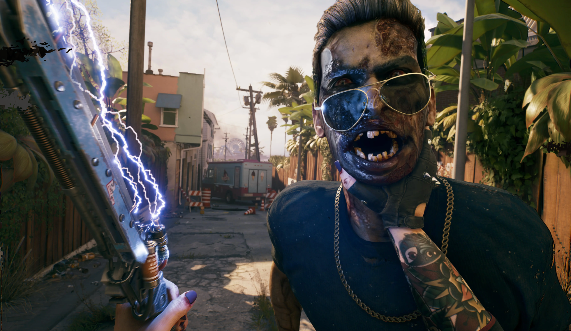 Seriously though, the gore in Dead Island 2 is on another level to anything else I’ve seen in a video game. The procedural way that the zombies fall apart as you hit, melt, shock and burn them really has to be seen to be believed as it’s both gruesome and glorious at the same time. It’s like an early Peter Jackson movie come to life and honestly, if you’re a horror movie gore-hound, the visuals in this game are going to leave you whooping your beautiful little head off because there are some spectacular displays of dismemberment and destruction here.